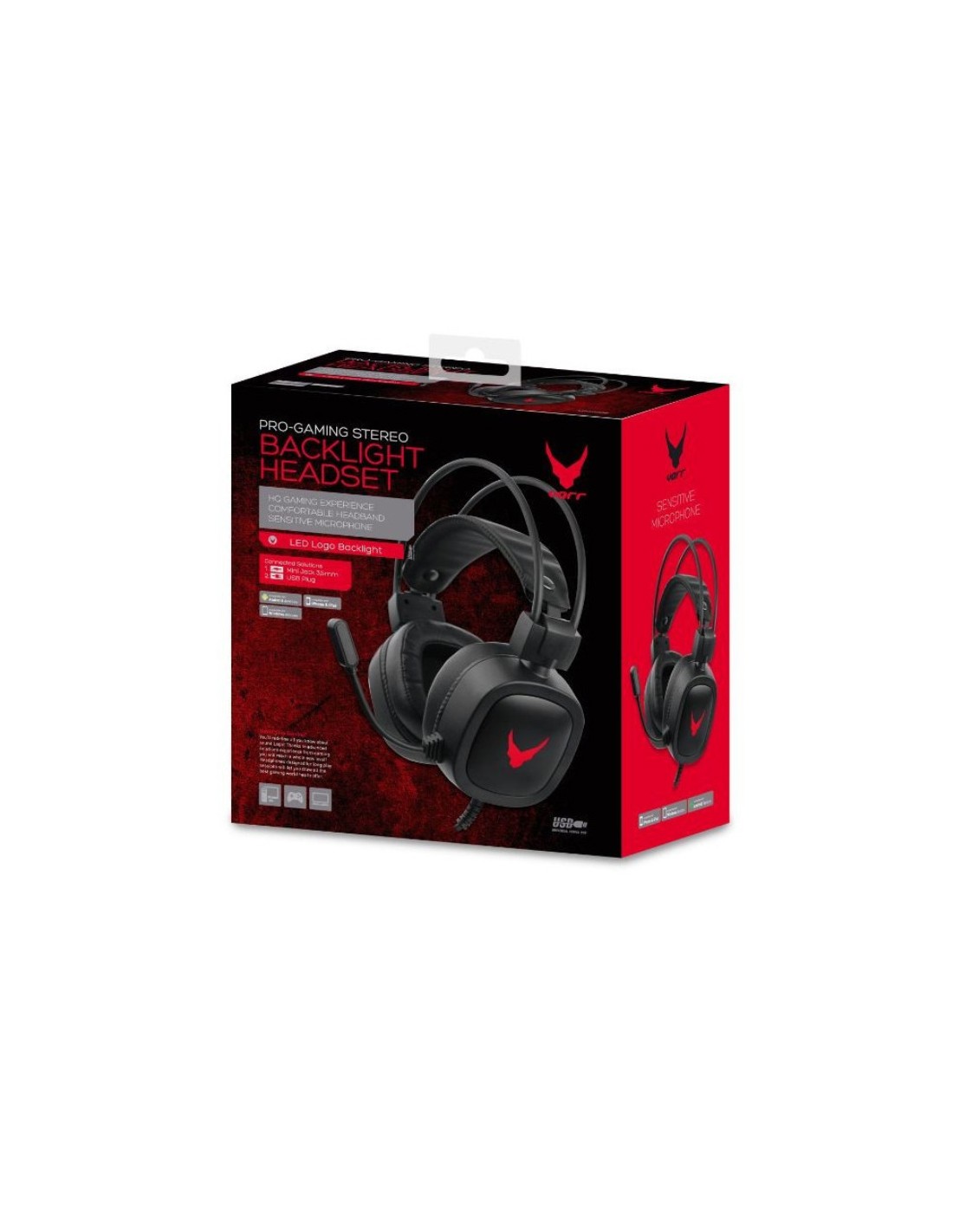 Varr Over-Ear VH6020B - Auriculares para Videojuegos con micrófono y retroiluminación LED.