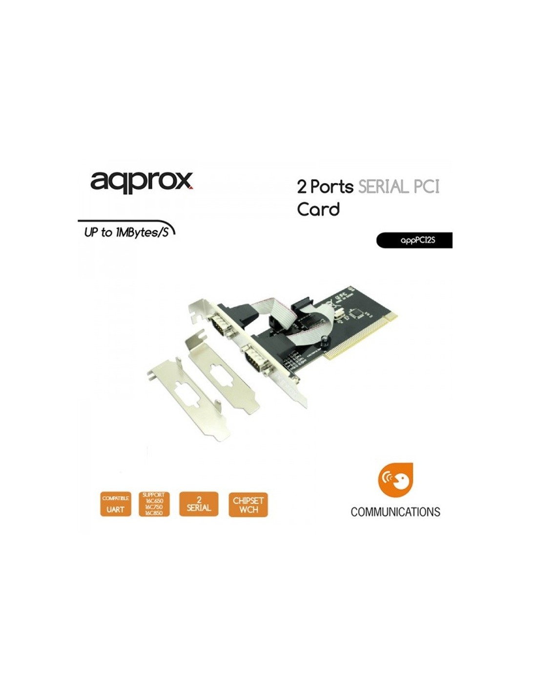 Aumenta las posibilidades que le ofrece su equipo gracias a esta tarjeta PCI de perfil alto y bajo de Approx, que le proporcionará dos nuevos puertos serie adicionales (con una tasa de transferencia de hasta 1 Mbyte/sec) con el que podrás conectar cualquier periférico compatible.