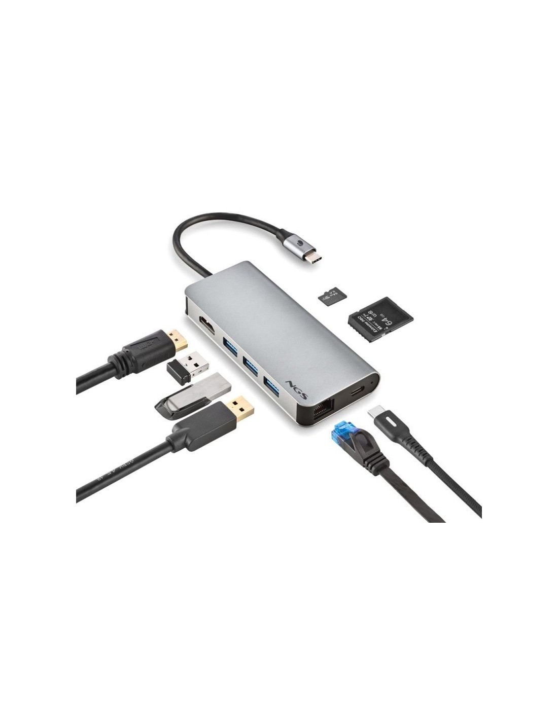 Adaptador multipuerto NGS WONDER DOCK 8 USB-C ultraligero de aluminio 8 en 1 que multiplica el número de puertos del ordenador portátil o PC.