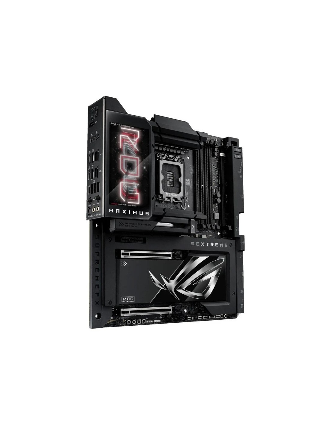 La ROG Maximus Z890 Extreme es la máxima expresión de tecnología punta y rendimiento en placas base. Descubre los límites superiores de los procesadores Intel Core™ Ultra Serie 2, los módulos DDR5, las tarjetas gráficas PCIe 5.0, el almacenamiento NVMe, la conectividad USB, la funcionalidad Thunderbolt™ y mucho más, todo ello envuelto en un elegante paquete con una pantalla LCD larga de 5 pulgadas a todo color que puede ofrecer imágenes vibrantes o estadísticas del sistema en directo para adaptarse a tus gustos personales.