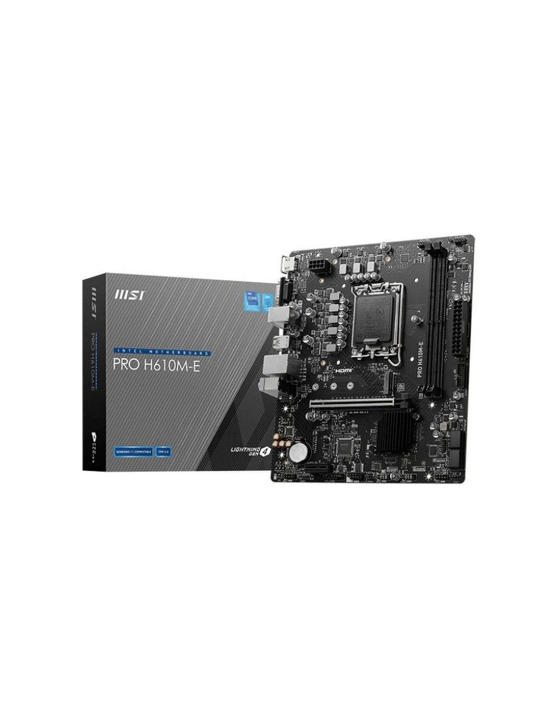 La MSI PRO H610M-E es la placa base perfecta para aquellos que buscan el mejor rendimiento y la máxima fiabilidad a la hora de construir su PC. Este modelo está diseñado para ofrecer una experiencia de usuario inigualable, con características avanzadas que satisfacen las demandas tanto de usuarios domésticos como profesionales. Descubre todo lo que este robusto componente puede ofrecerte y eleva tu configuración a un nuevo nivel.