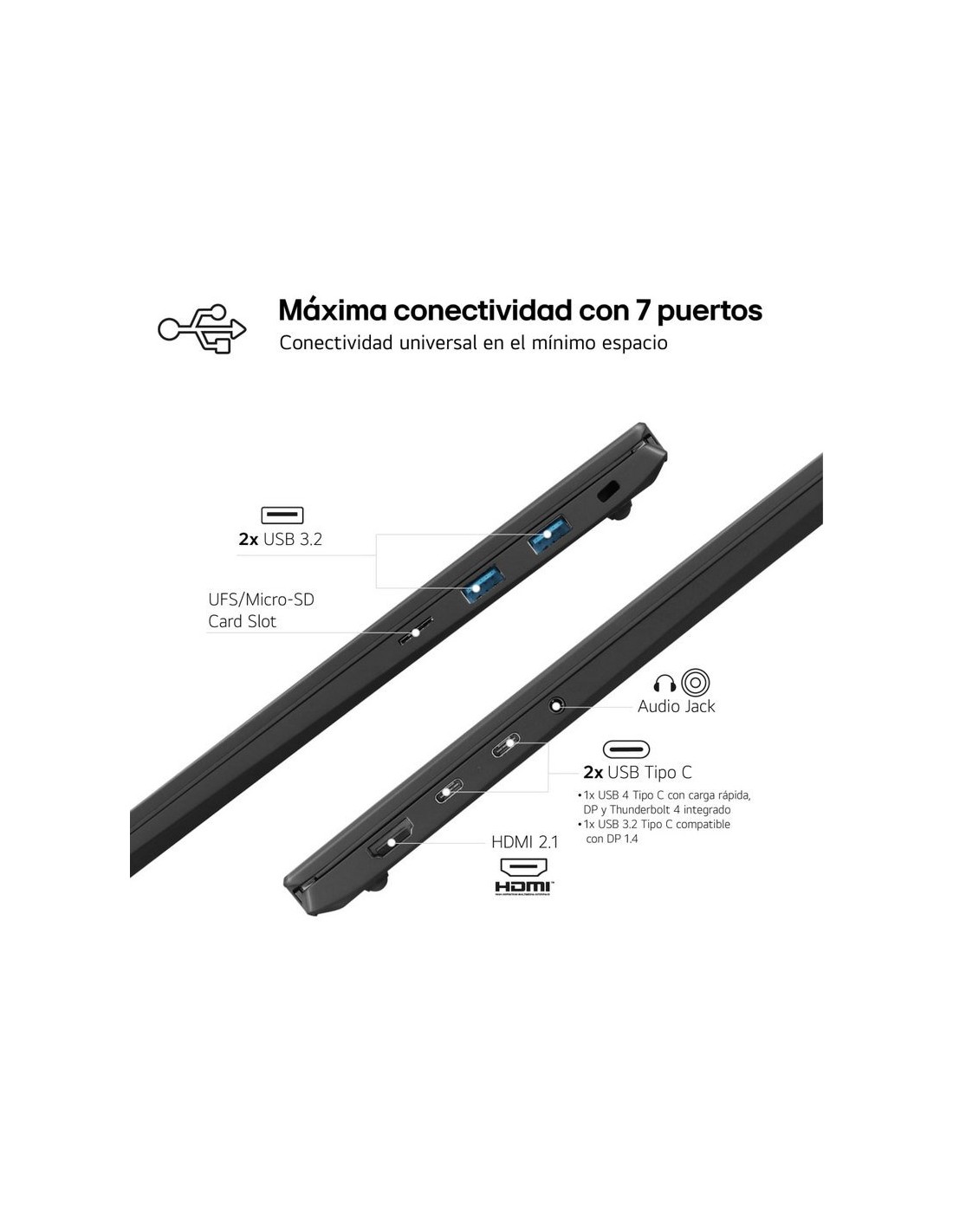 2 x USB 4 Gen3x2 (Tipo-C) con carga rápida, DisplayPort, Thunderbolt 4 integrado