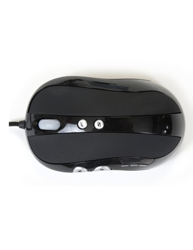 Ratón Láser con rastreo de precisión en casi todas las superficies. Dispone de 7 botones, rueda de scroll y 3 Led con color y estado de velocidad. Botones dedicados al Gaming (Fuego/Velocidad). Función especial de disparo, superior a 4 shots continuos, ideal para aplicaciones gaming. Ajuste de CPI en 800 / 1600 / 2200 dpi. No necesita de drivers.