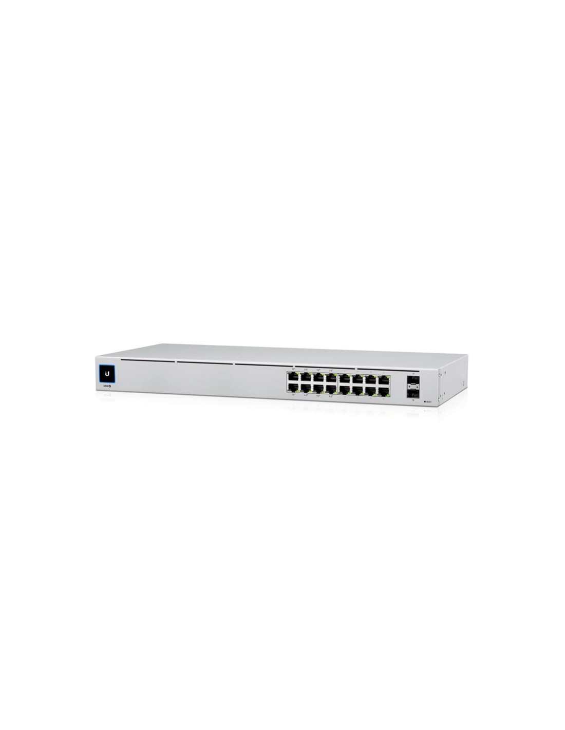 El USW-16-POE es un conmutador Gigabit Layer 2 configurable con dieciséis puertos Gigabit Ethernet que incluyen ocho puertos PoE + 802.3at de detección automática y dos puertos SFP. Proporciona enlaces Gigabit PoE a sus dispositivos Ethernet RJ45 y opciones de enlace ascendente de fibra Gigabit a su red empresarial. El USW-16-POE cuenta con un LCM táctil de 1.3" para proporcionar información de estado. Con una profundidad de 7.9", el diseño compacto sin ventilador se puede instalar fácilmente en un gabinete de rack SOHO. Gestionado y configurado por el controlador de red UniFi con soporte de aplicaciones móviles UniFi, el USW-16-POE ofrece un amplio conjunto de funciones y protocolos de conmutación de capa 2 avanzados, incluido el modo de operación (conmutación, duplicación o agregado) por puerto. El controlador de red UniFi y la aplicación móvil permiten a los administradores configurar y monitorear virtualmente todas las funciones del conmutador en una interfaz gráfica de usuario.