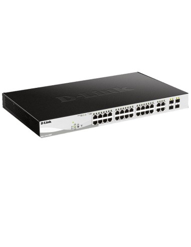 D-Link DGS-1210-28MP - Switch PoE 24 Puertos Gigabit y 4 Puertos SFP Combo (24 x PoE máx. 30W por Puerto hasta un Total 370W máx.), Altura 1U, VLAN automática para Video vigilancia y telefonía IP.