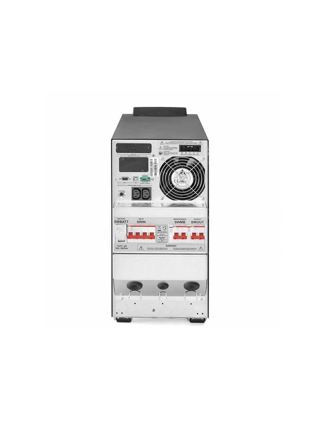 • Placa de bornes de salida + 2 bases IEC para la alimentación de consumidores locales (ordenadores, dispositivos, etc.).