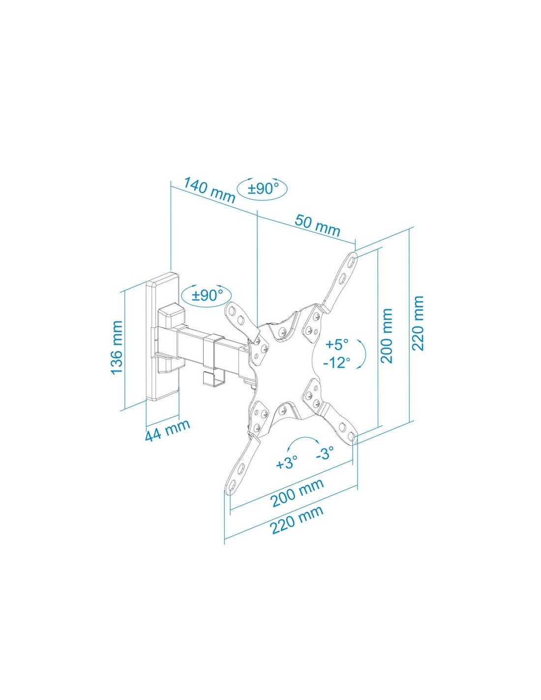 - Ángulo de giro: +90°/-90°