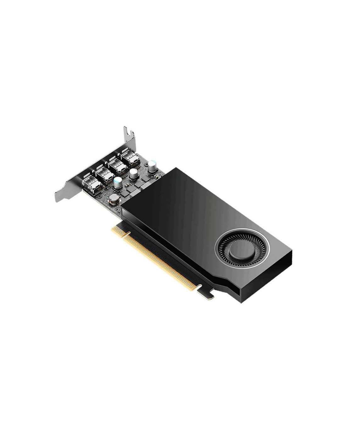 Con 4 GB de memoria GDDR6 y un ancho de banda de 96 GB/s, esta tarjeta puede manejar múltiples cargas de trabajo, desde el modelado 3D hasta la edición de video. Soporta hasta 4 pantallas 5K mediante sus cuatro puertos mini DisplayPort 1.4a, y su diseño de ranura única la hace adecuada para estaciones de trabajo compactas. Además, su consumo energético es bajo, con solo 50 W, lo que la convierte en una opción eficiente para entornos profesionales.