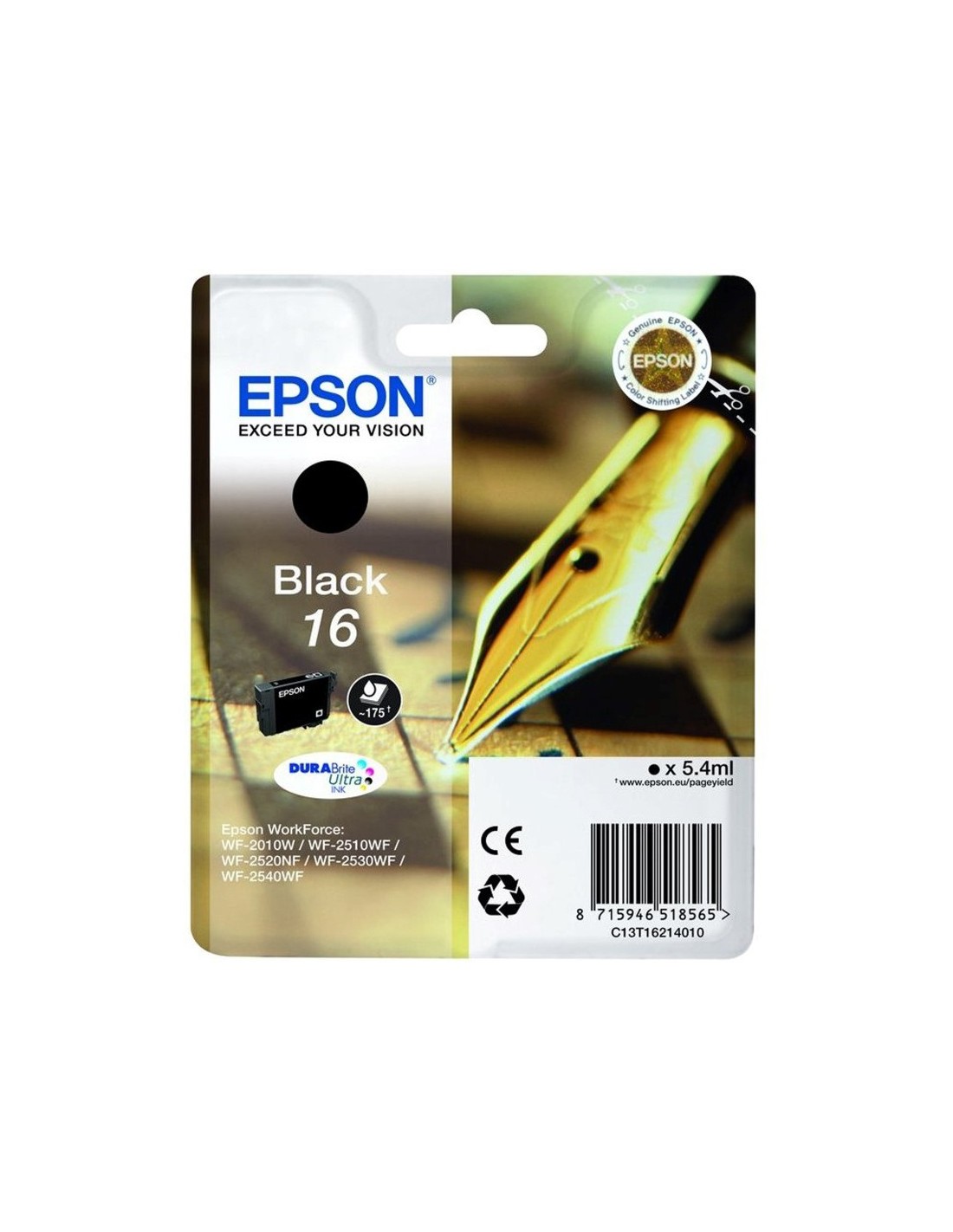 CARTUCHO EPSON T162140 NEGRO PN: C13T162140 EAN: 8715946624884